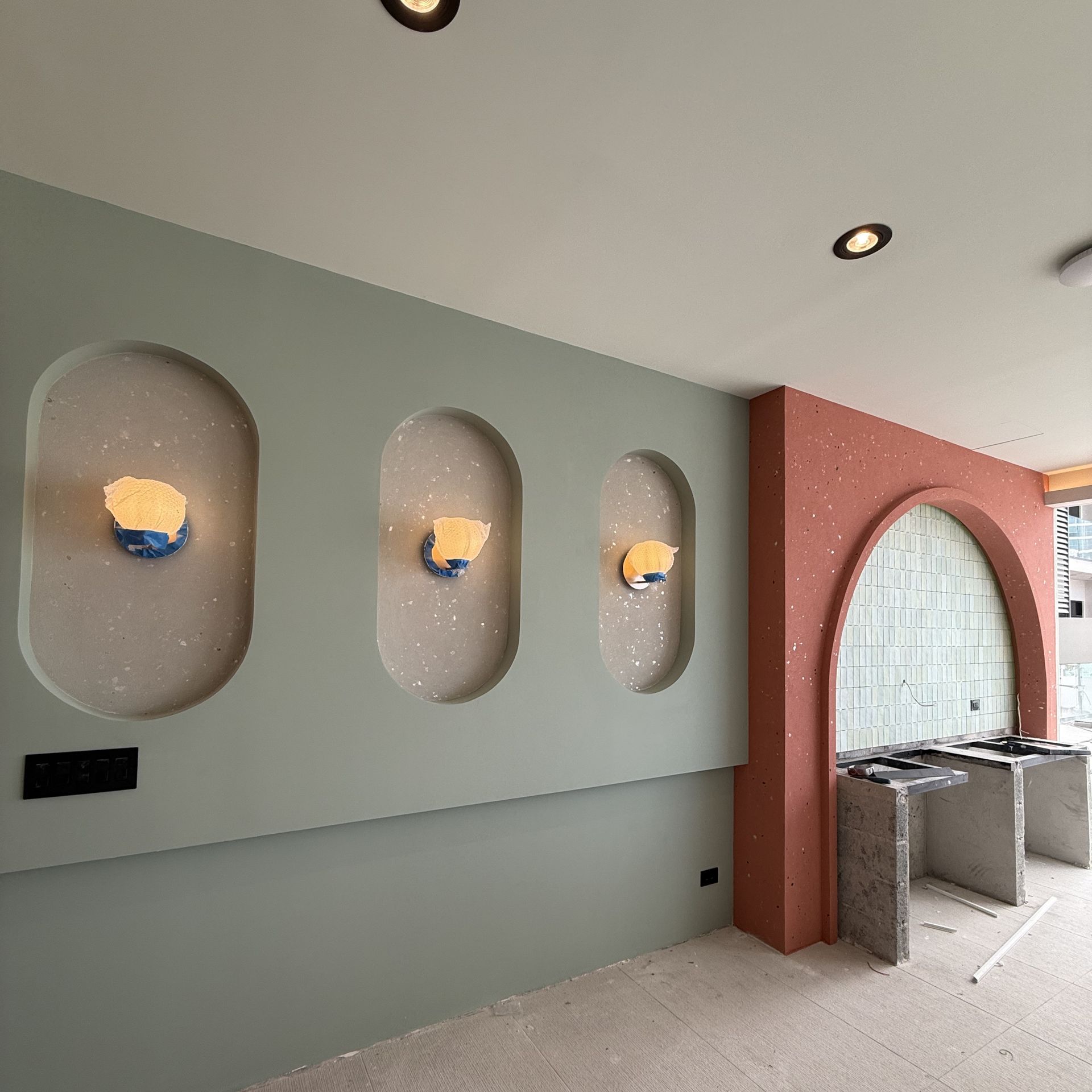 Proyecto enfocado en la aplicación de un sistema decorativo tipo cantera, diseñado para aportar textura, profundidad y carácter arquitectónico a los espacios interiores. El sistema incorpora cargas siloxánicas de alto desempeño, permitiendo una mayor durabilidad, resistencia y estabilidad del acabado en el tiempo. La intervención buscó transformar superficies planas en elementos visuales protagonistas, integrando diseño, materialidad y ejecución técnica en un solo sistema.