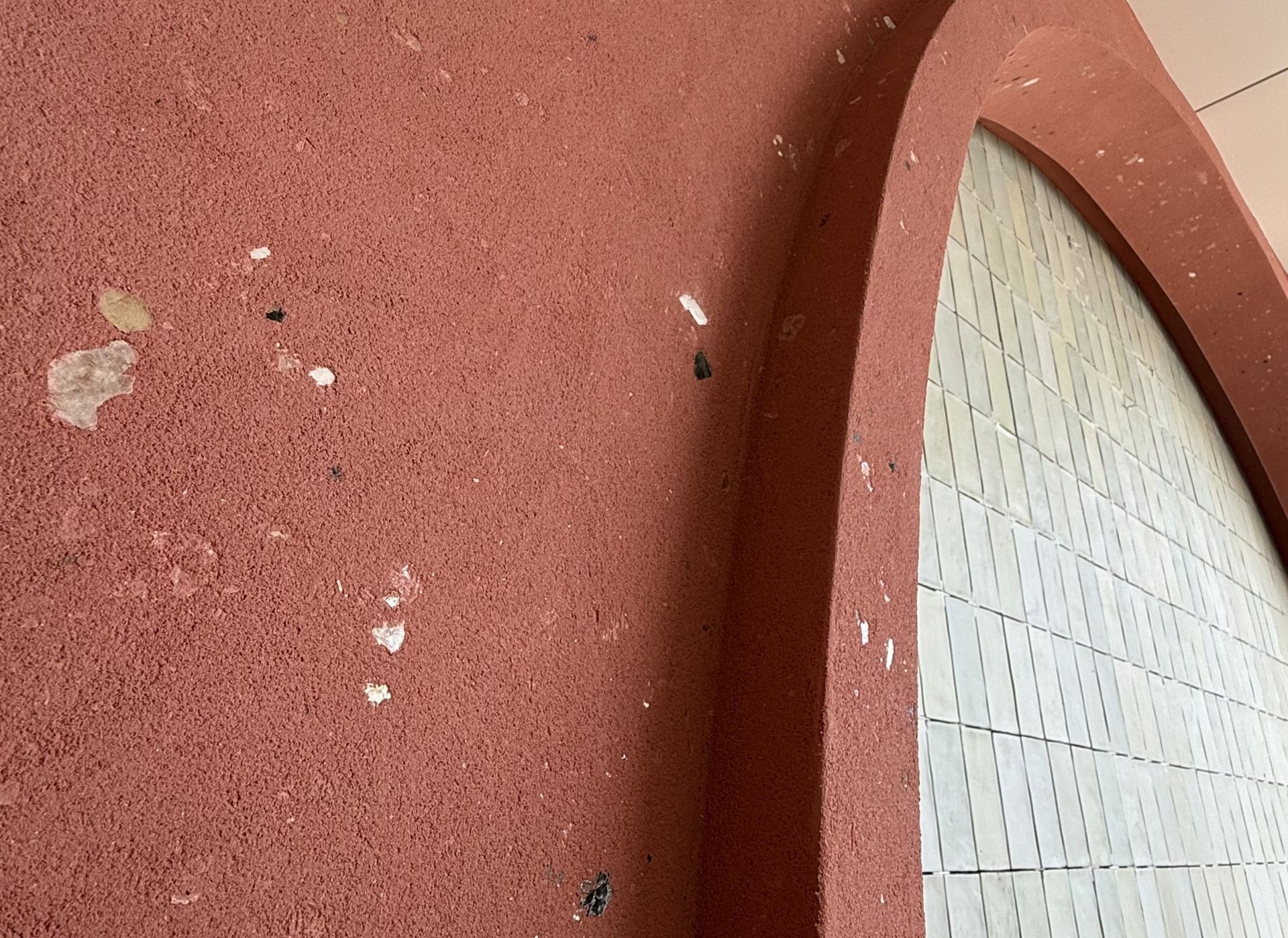 El proceso inició con la preparación de la superficie, asegurando condiciones óptimas libres de humedad, hongos o contaminantes. Posteriormente se realizó el sellado con SOTTOFONDO 1000 o 3x1, dependiendo del nivel de absorción del sustrato, garantizando una correcta adherencia del sistema. Las áreas con imperfecciones fueron resanadas con COVERPLAST, logrando una base uniforme. Se aplicó una capa de fondeo con SOTTOPAINT al tono dominante, permitiendo homogeneidad cromática. Finalmente, se aplicó el acabado tipo CANTERA con llana de acero, y tras su secado, se trabajó la superficie con fibra húmeda en movimientos circulares para revelar las hojuelas decorativas y lograr el efecto piedra natural.